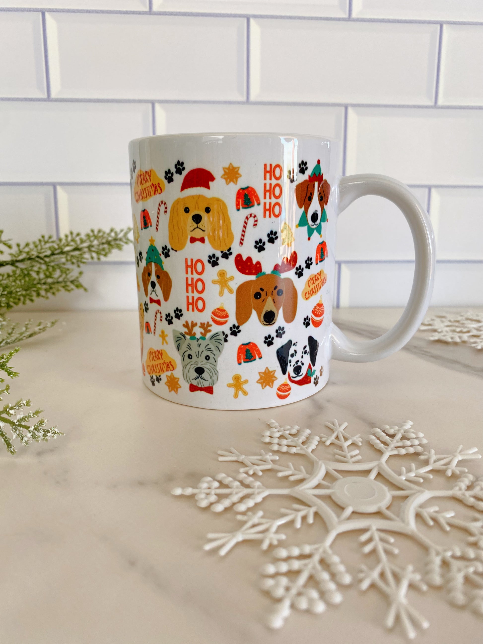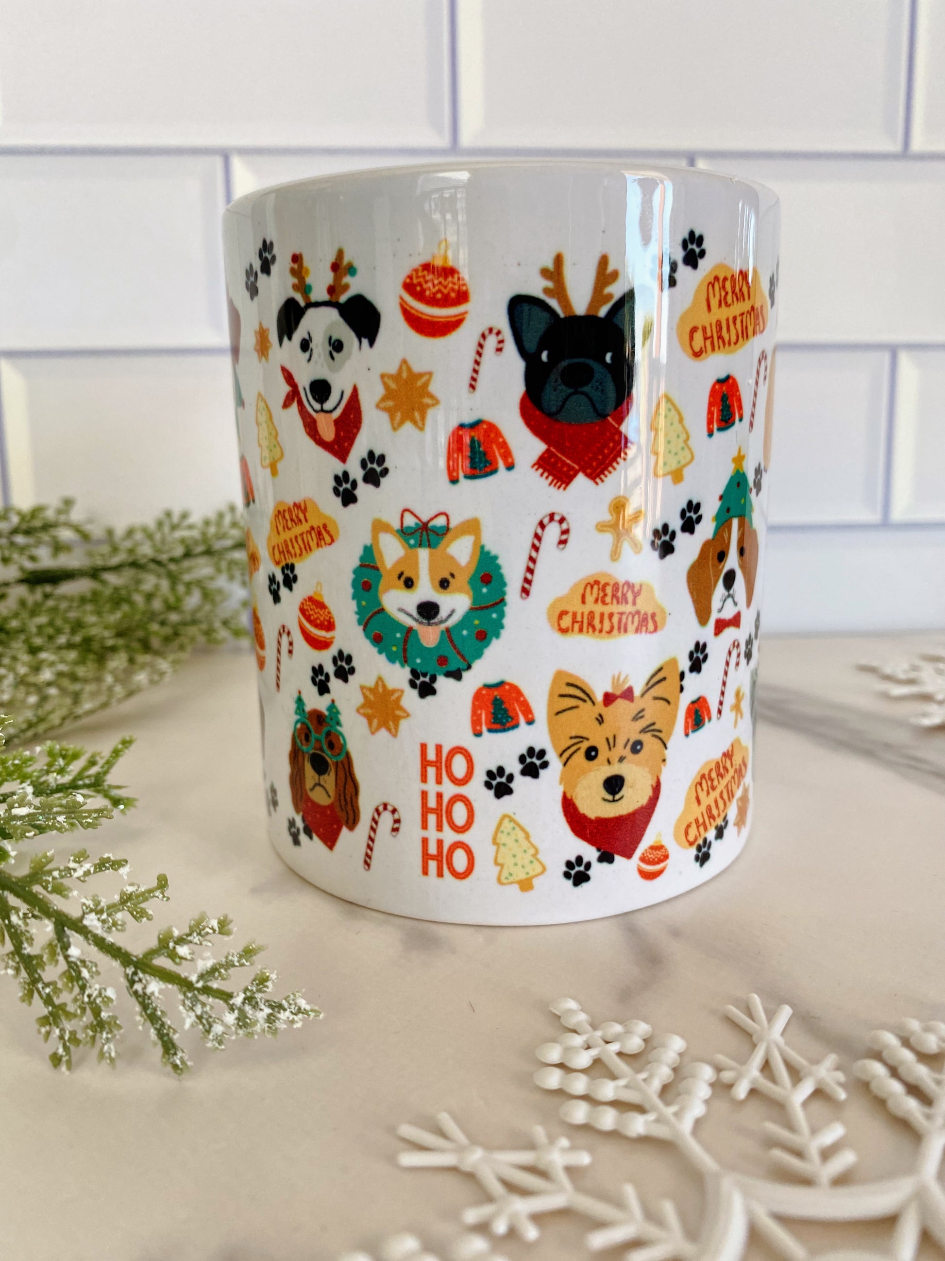Enjoy your coffee in our Christmas dog mug! This glossy coffee mug is made of quality ceramic, with a strong and comfortable handle, making a nice coffee mug or latte mug cup. The size of the mug is 11oz.