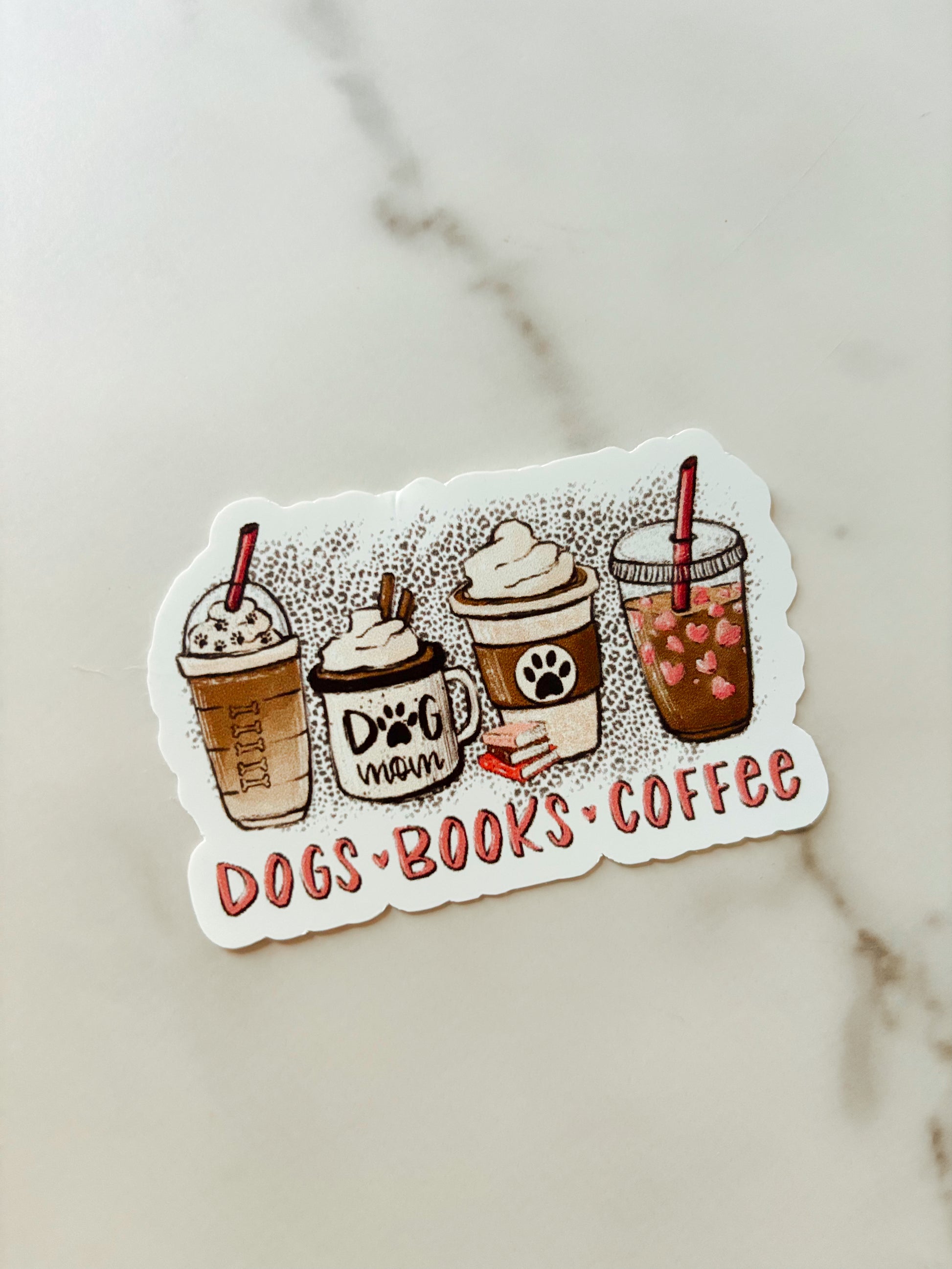 Dogs Books Coffee Sticker